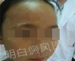 据小云母亲回忆说,小云在一年前右前额部位出现一个白斑,当时没有给予足够重视,谁知一个月后,白斑突然迅速扩大,很快就布满了整个右前额。在当地医院确诊为白癜风后,不太放心。于是在朋友的介绍下,带着小云来到了我院。