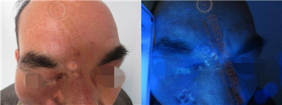 ▲病 史:患者面部患白斑多年,多次治疗不见好转,特来到我院治疗