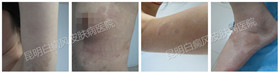 ▲现 病 史:身体多处白斑前胸,手臂,脚部大面积白斑。边缘模糊不清,色素脱失严重。曾在重庆,武汉等地医院治疗过,效果不佳。遂经人介绍特来我院进行治疗。