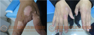 【患者信息】 ▲患者资料:刘玉杨(化名)、男、38岁 ▲主 诉:手部白斑1年余 ▲家【详细】